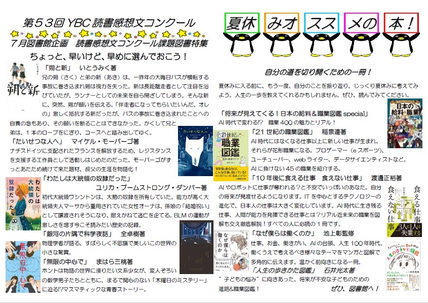 ・第53回YBC読書感想文コンクール課題図書の紹介