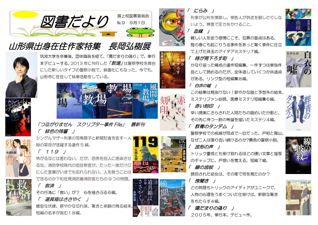 もうしばらく残暑が続きます。若さと気力で乗り越えていきましょう。9月5日開催の「面接練習会(3年生対象)」には他学年の保護者の方々からも御協力頂き、「表情が大切」「自信を持って臨む」「最上校での経験を十分に表現する」など貴重な御助言を多数頂戴致しました。