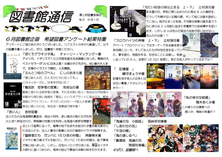 2021年5月31日 11時13分・6月図書館企画希望図書アンケート結果特集